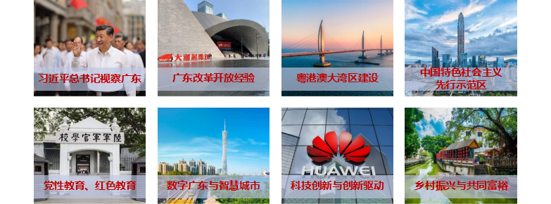 在广州、珠海、深圳、东莞、佛山、中山等粤港澳大湾区城市开发有280余个常用现场教学点,形成布局粤港澳大湾区的现场教学基地库,全景展示“双区经验”。