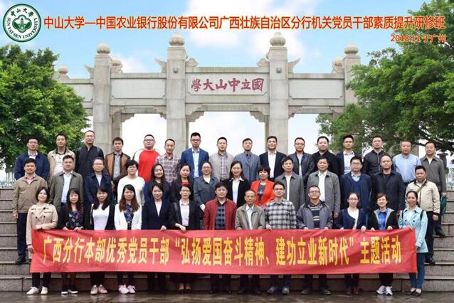 11月19日,在中国农业银行股份有限公司广西壮族自治区分行的委托下,中山大学高等继续教育中心举办了为期6天的中国农业银行股份有限公司广西壮族自治区分行机关党员干部素质提升研修班。
