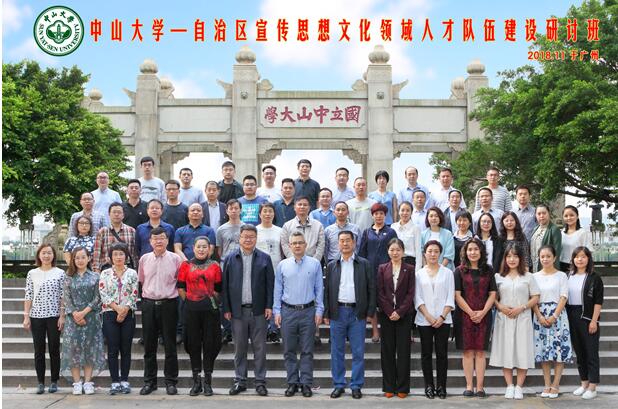 为全面贯彻落实党的十九大精神。深入学习领会习近平新时代中国特色社会主义思想和文化强国战略部署,进一步加强新疆自治区宣传思想文化人才队伍建设,不断提高自治区宣传思想文化人才政治素质、理论素养、业务水平,新疆自治区党委宣传部自11月11日在中山大学成功举办了为期15天的自治区宣传思想文化领域人才队伍建设研讨班。来自全疆各地州的51名文化产业领军人物和宣传领域拔尖人才参加了此次培训。